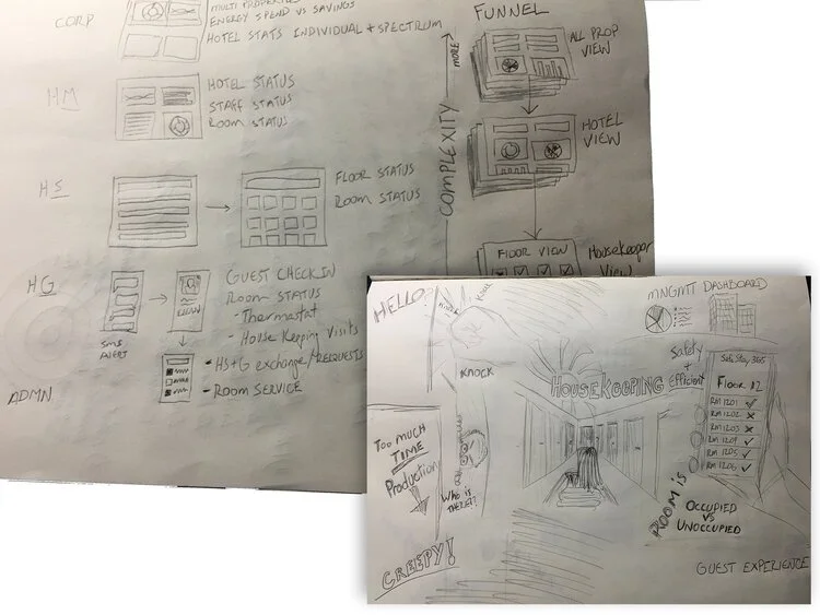 Empathy sessions were held with hospitality customers that frequently travel and stay in hotels as well as the hotel staffers that move through multiple rooms everyday.