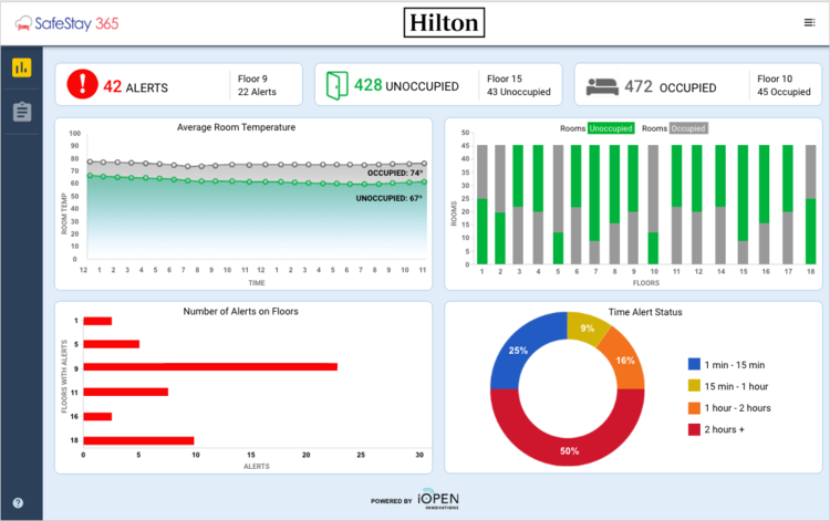 The hospitality industry invests millions of dollars into technologies that improve the guest experience. Automation and key-less solutions that enhance their hotel guests stays are flooding the industry. SafeStay 365 provides real-time room status 24/7 using cellular technology, IoT and wireless hardware. Room data collected is transformed into a data visualization UI that highlights occupancy status, energy footprint, alerts, etc…